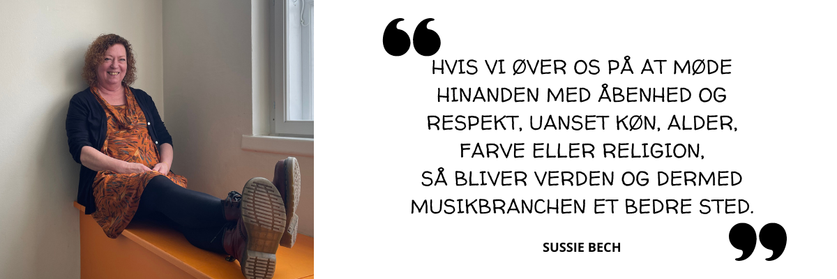 “Et ændret kvindesyn med gensidig respekt som grundlag for ligeværdige samarbejder både på, foran og bag scenen. Man kan snakke længe om sexisme, fordomme og alt mulig andet men helt grundlæggende tror jeg at det handler om, at vi skal justere vores menneskesyn. Jeg tror på samarbejde, inklusion og fællesskaber frem for konkurrence og hvis vi øver os på at møde hinanden med åbenhed og respekt uanset køn, alder, farve eller religion, så bliver verden og dermed musikbranchen et bedre sted for os alle. “